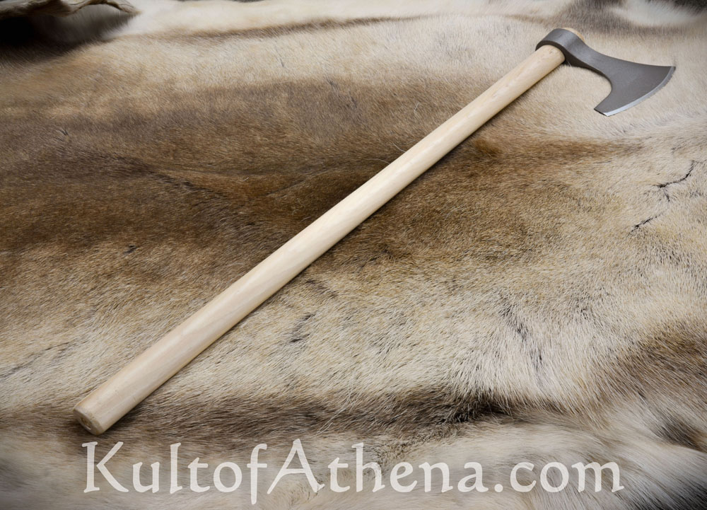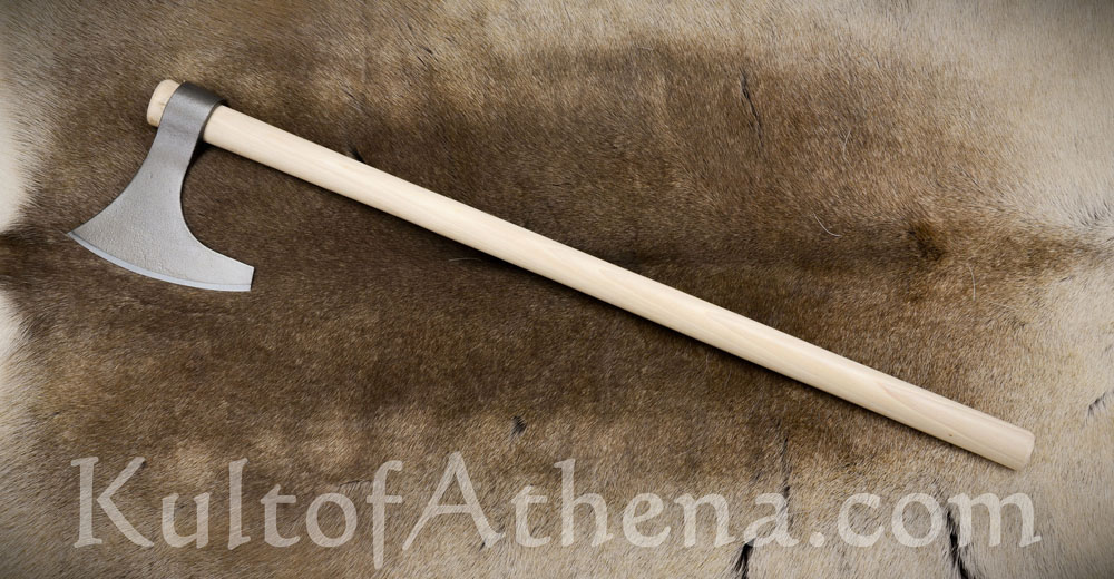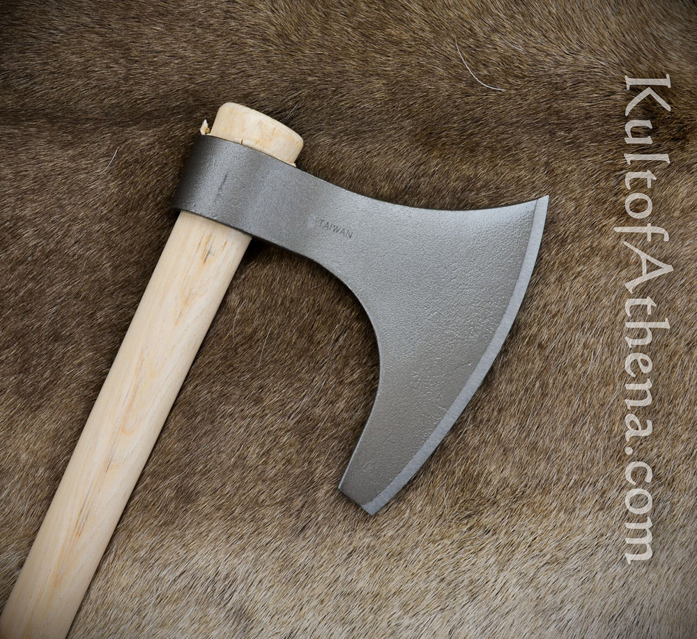 Great outdoors axe… I’ve owned this axe for a few years now, and use it constantly. I do lots of hiking in the woods, and this axe will handle any task at hand. The light weight makes it easy to strap onto a backpack. Not exactly super-sharp out of the box, but a little elbow-grease and a file and stone will leave it razor sharp. Do yourself a favor and sand down the handle and add some wood stain, clear-coat, and some leather grip wrap for a really authentic looking Viking axe. Also, go the extra $ and get the edge cover. You’ll thank yourself later. ;)