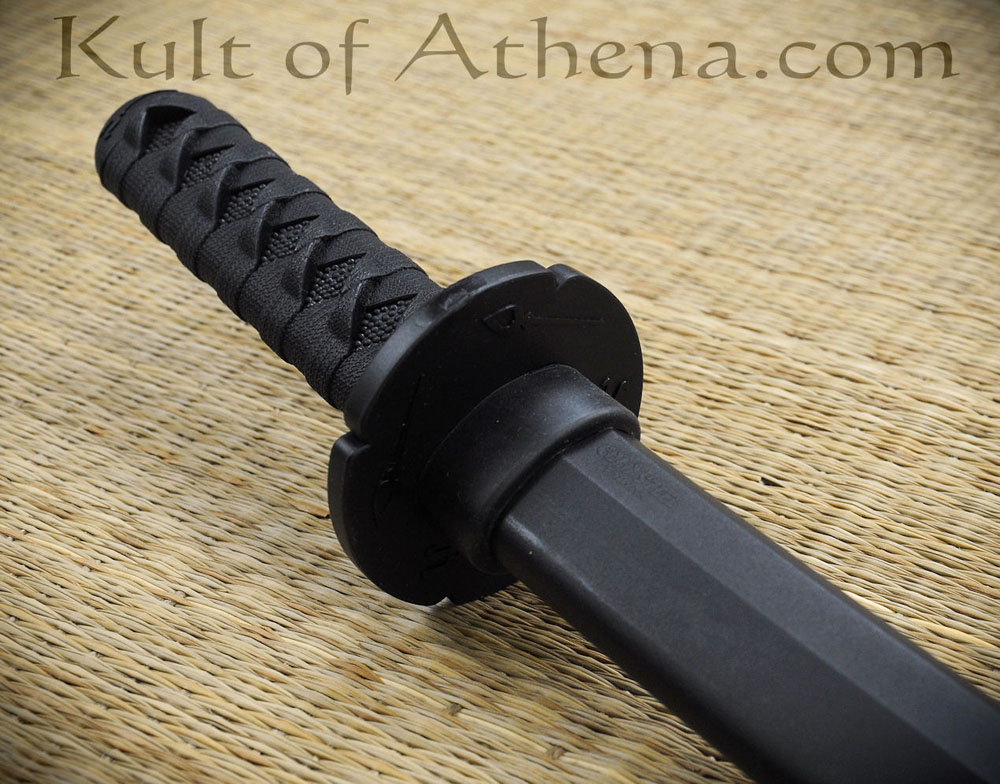 This Wakizashi Bokken is made from robust polypropylene to give it substantial, long-lasting durability. It has a molded grip to replicated the look of a wrapped tsuka grip – its tsuba is held in place with a rubber habaki.