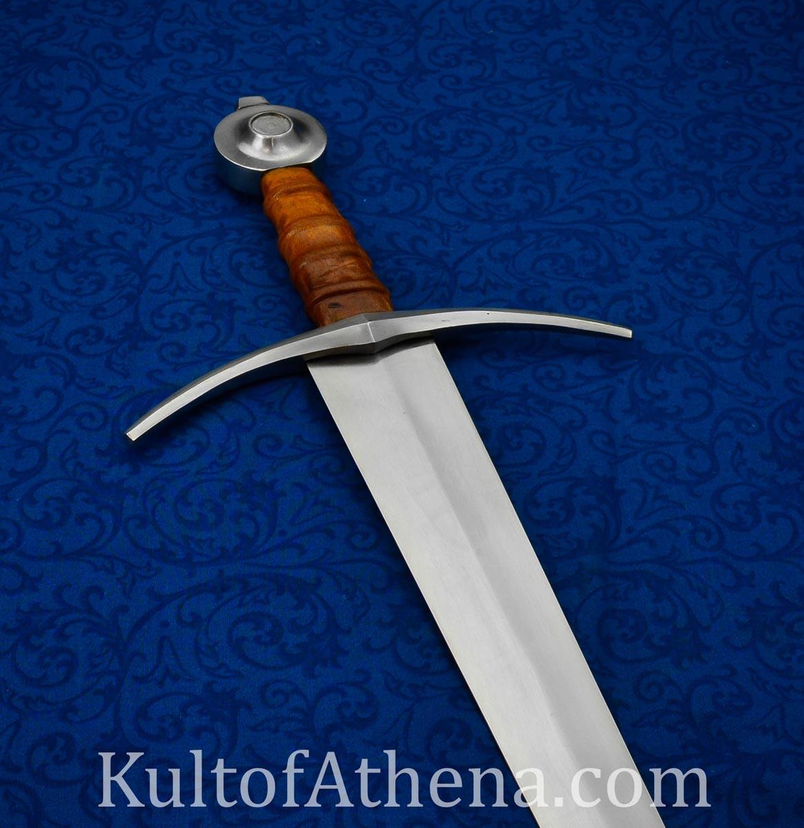 If you were to receive the actual sword in the image, it would be quite good. The blade is perfectly profiled and well executed, the guard is very well done, and the leatherwork of scabbard and grip is very satisfactory. But the sloppiness of the pommel completely detracts from the purchase. Kult of Athena says this is standard and acceptable. I can’t imagine how disappointing the reduced price “blemished” product would be.