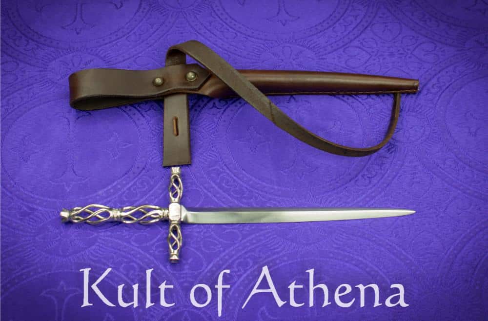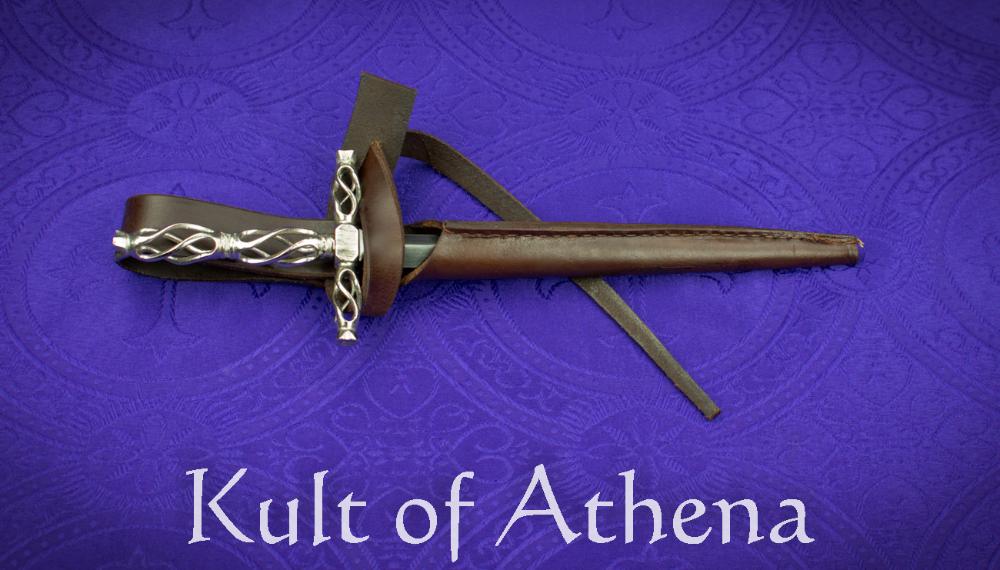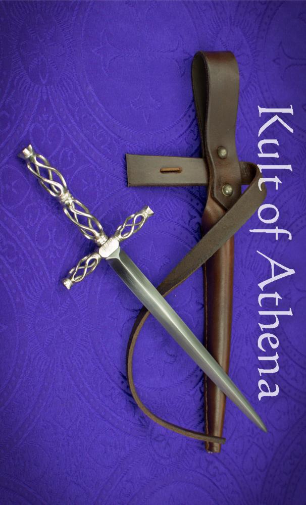 This elegant courtly stiletto has a blade of high carbon steel and a hilt of brass. It comes with a stitched leather sheath with belt loop and retention strap.