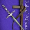 This elegant courtly stiletto has a blade of high carbon steel and a hilt of brass. It comes with a stitched leather sheath with belt loop and retention strap.