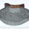 Pretty good pattern I was pleasantly surprised with the design of this aventail. The pattern used certainly isn’t lazy. From the neck up the rings follow a battern that allows the chainmail to drape vertically and tighten up if too big like we all know chainmail tends to do. From the neck down the pattern is a seamless circumference, like it was constructed as one long winding strip of mail. Much better than some other stuff I’ve seen with higher quality links, but an obvious patch-job of trapezoidal pieces.