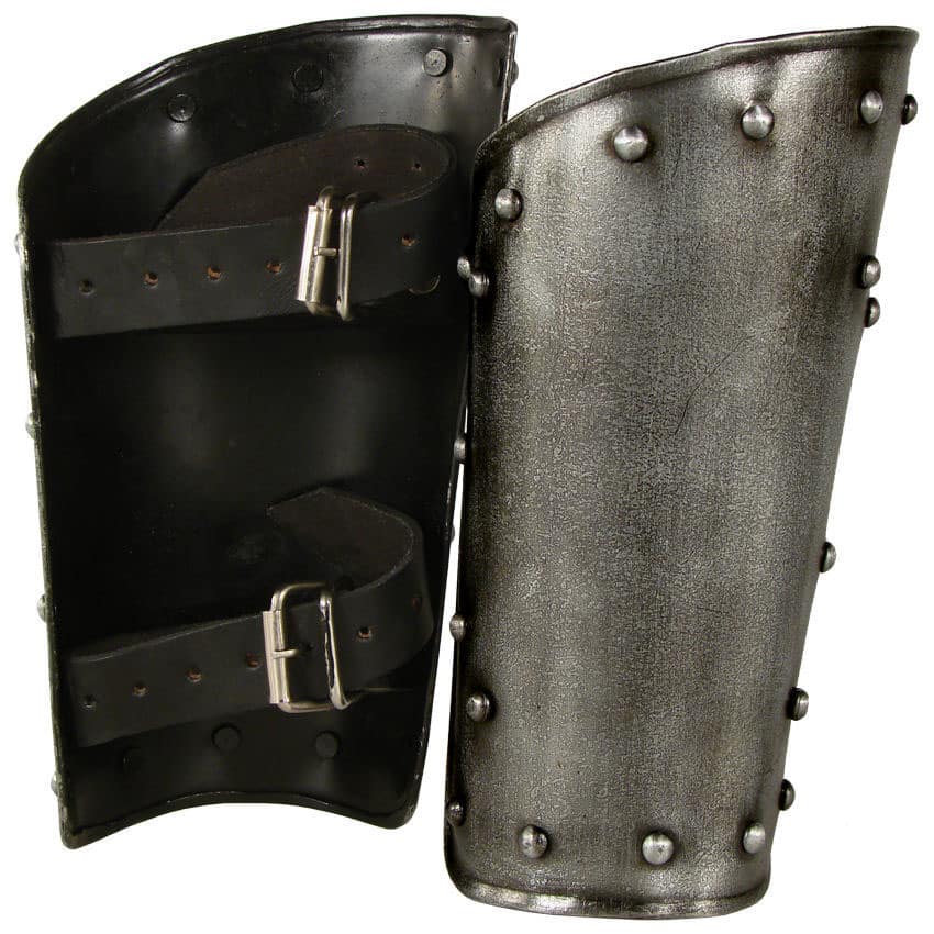 Very good protection….. These look great by themselves, and fantastic with the pauldrons. It’s hard to see from the photo, but the internal strapping is one piece, and double riveted. Unless you are wearing them over a gambeson, I suggest elbow-length padded bracers underneath. They come to a bit of a point on the elbow end, and could jab you if you are not wearing them correctly. …………McM