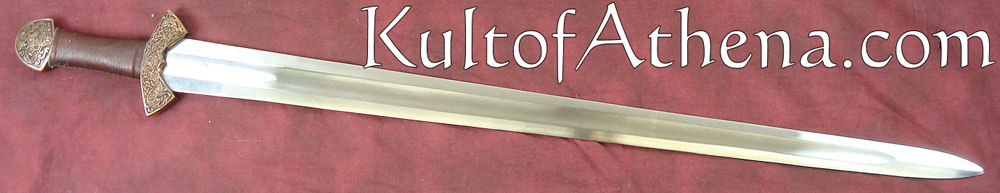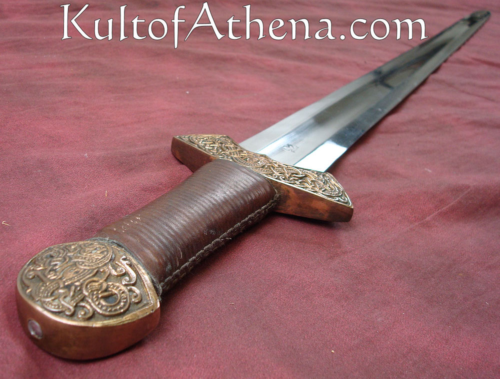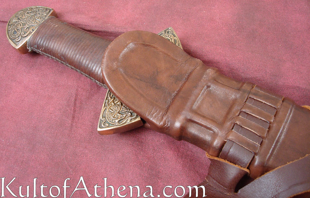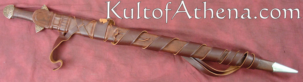 The Darksword Armory 11th Century Viking Sword is based on a find in Finland that dates back to the 11th century. Features a thick, tempered, high carbon steel blade with wide fuller. The guard and pommel are cast bronze. The grip is wood covered in brown leather. Includes a wood scabbard with leather wrap, steel tip and integrated sword belt.