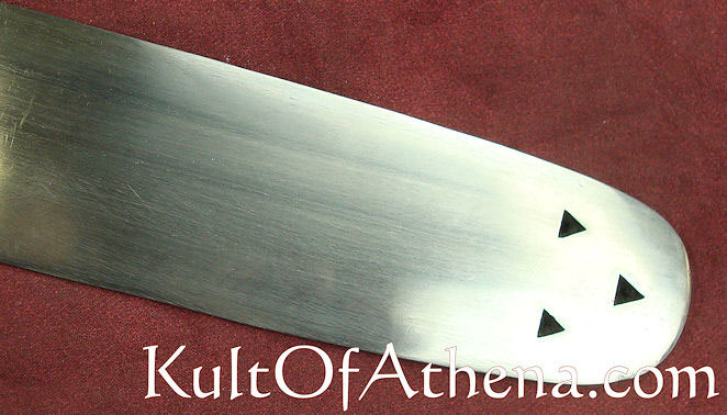 The Darksword Armory German Executioner Sword is designed after a later historical model that survives in the Medieval Crime Museum (Mittelalterliches Kriminalmuseum) in Germany. This sword dates from the 1720’s at the end of the period where swords were used for executions. This sword features a long, heavy blade that ends not in a point but a distinctive flat edge. The blade is heavily decorated as many executioners swords would be and the inscription translates to ”I spare no one” a brutal message for criminals facing this swords edge.