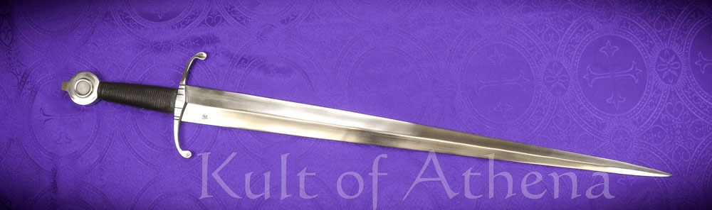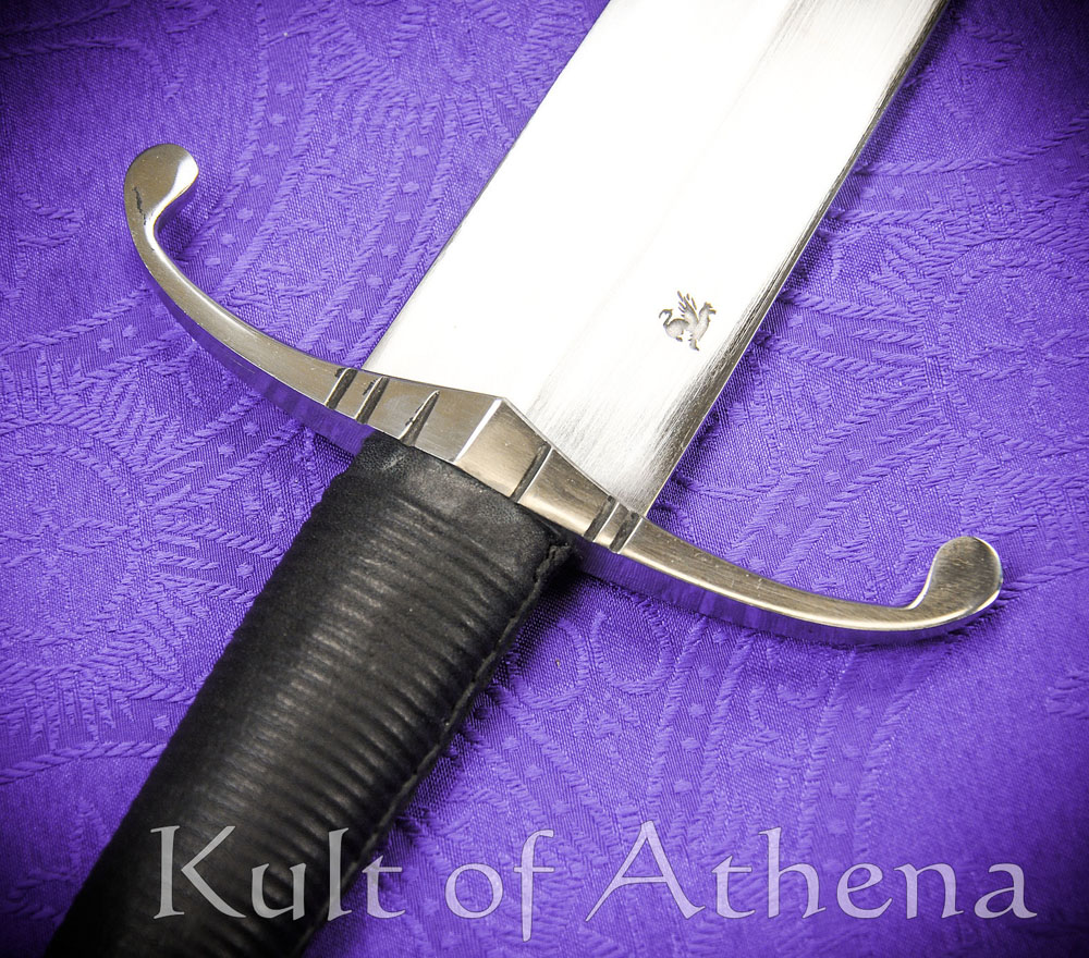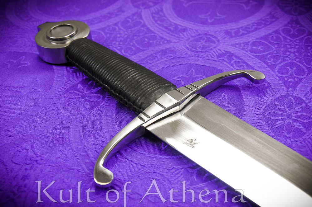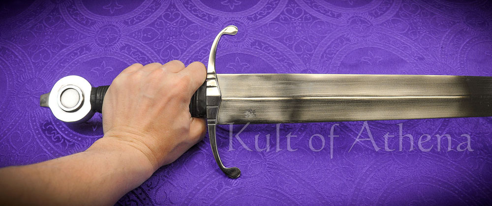 Oakeshotts praise is no mere fascination with coming into contact with an heirloom of a monarch, the sword itself is well balanced and agile and Darkswords replica captures this aspect of the Henry V sword well. It is a responsive and quick arming sword in the hand and its balance gives its user good control of the tip for thrusting. Its tapered profile clearly shows it to be a blade with as much an emphasis on thrusting as cutting – a fitting design for dealing with armored opponents in the late Medieval period. A simple, yet elegant arming sword.