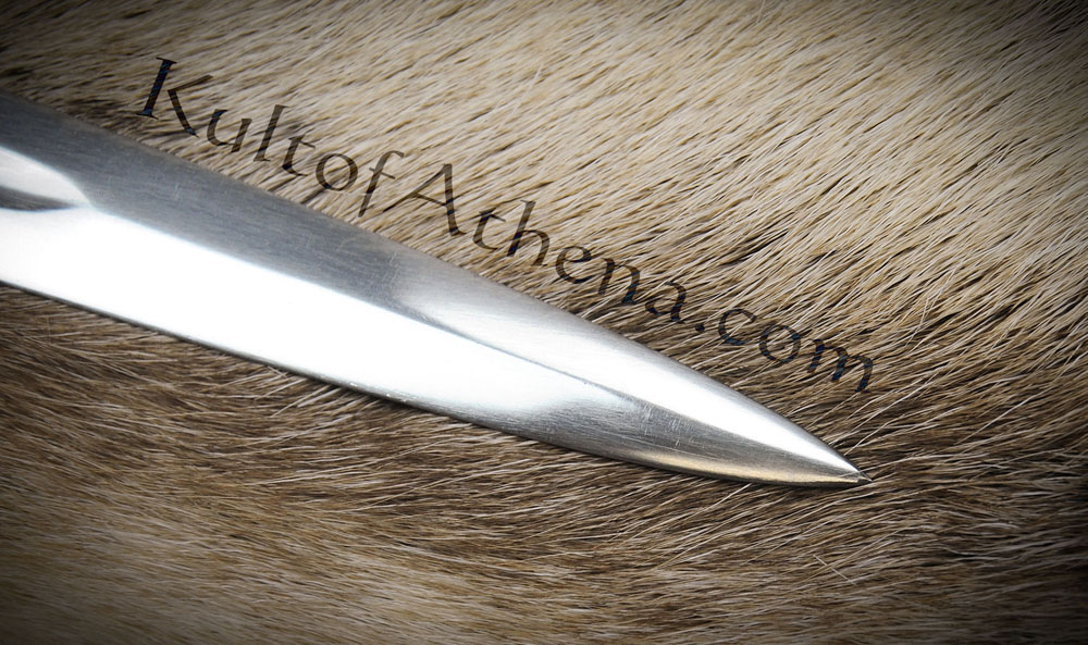 However, I don’t know if I’d pay full price for one like this. It’s a solid piece, and the sheath is cool (but will require some modification– the way the belt loops are positioned dumps the dagger, and the blade rattles around inside the wood core), but I still think the list price of 189 is a little steep.