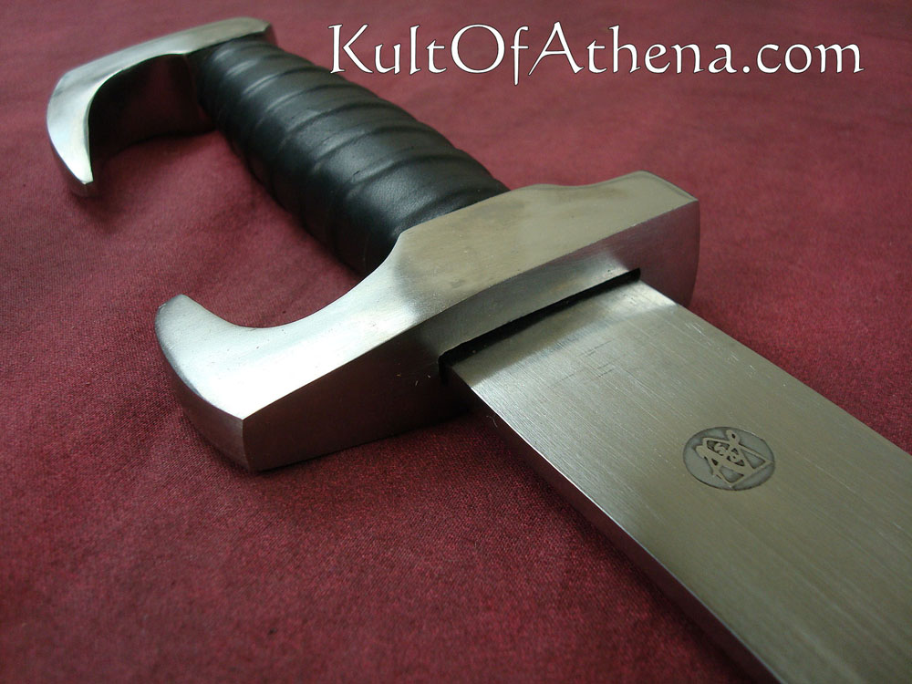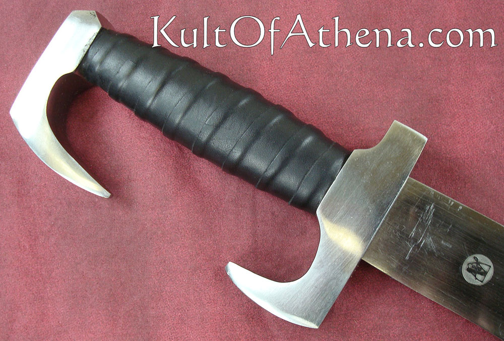 Inspired by the ”Spartan” sword featured in the movie 300, the Darksword Armory Spartan Sword features an unsharpened 5160 high carbon steel blade. The guard and pommel are steel, while the grip is wood with a black leather wrap. Includes a wood scabbard with leather wrap and steel accents.