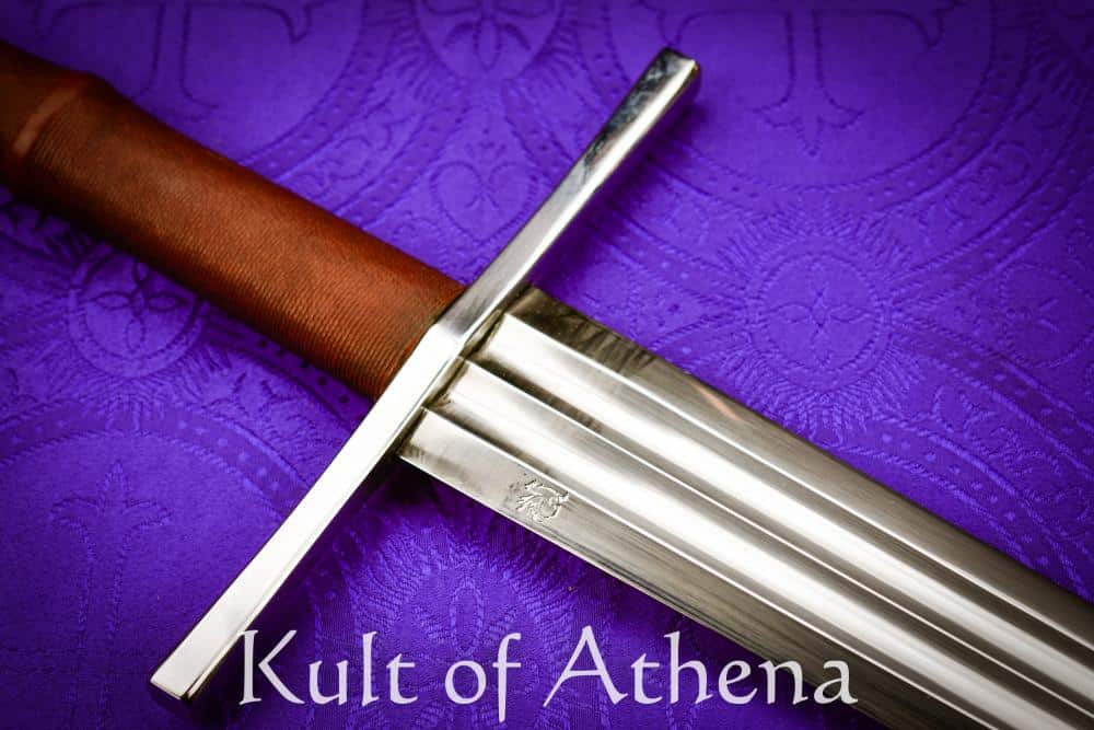 The long, tapered blade strikes a balance between historical authenticity and functional design. Its geometry reflects the transitional nature of early Renaissance arms: rooted in the cutting power of the medieval period, yet refined for the emerging techniques of two-handed swordsmanship. A classical cruciform guard and an elongated scent-stopper pommel enhance both the weapon’s silhouette and its handling dynamics, providing secure hand placement and an unmistakably period-correct aesthetic.