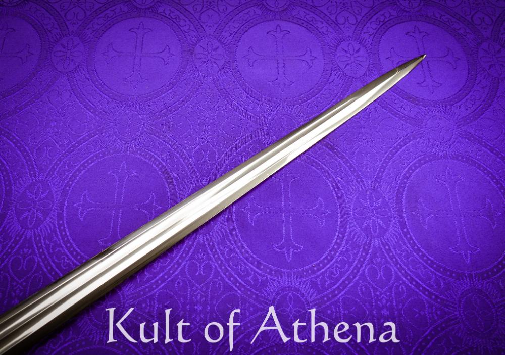 The long, tapered blade strikes a balance between historical authenticity and functional design. Its geometry reflects the transitional nature of early Renaissance arms: rooted in the cutting power of the medieval period, yet refined for the emerging techniques of two-handed swordsmanship. A classical cruciform guard and an elongated scent-stopper pommel enhance both the weapon’s silhouette and its handling dynamics, providing secure hand placement and an unmistakably period-correct aesthetic.
