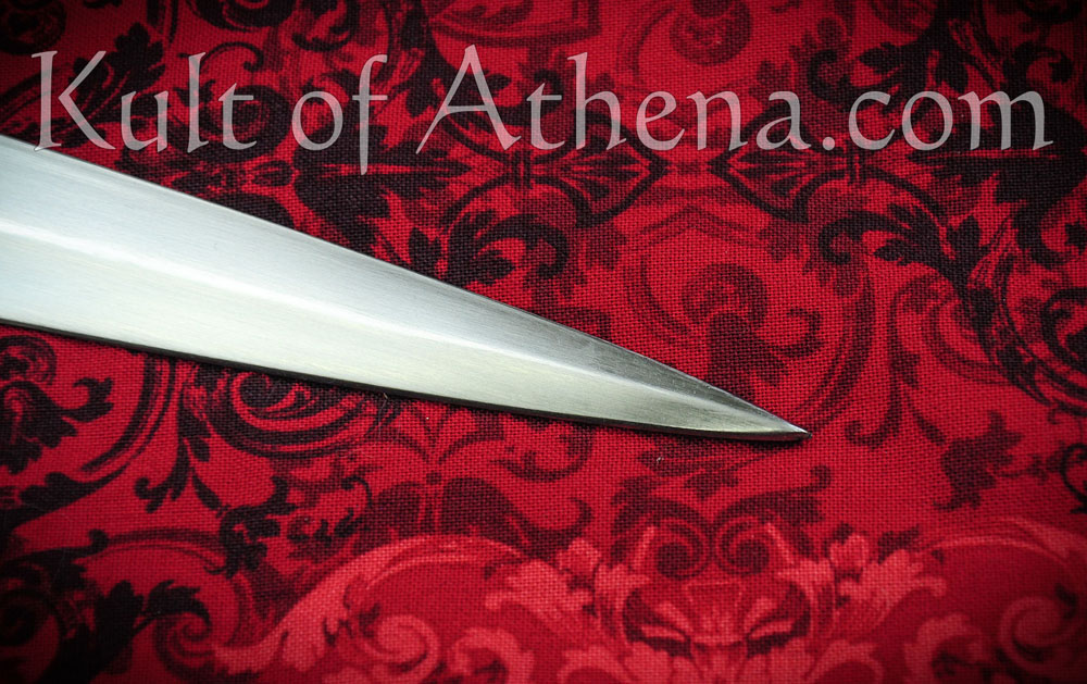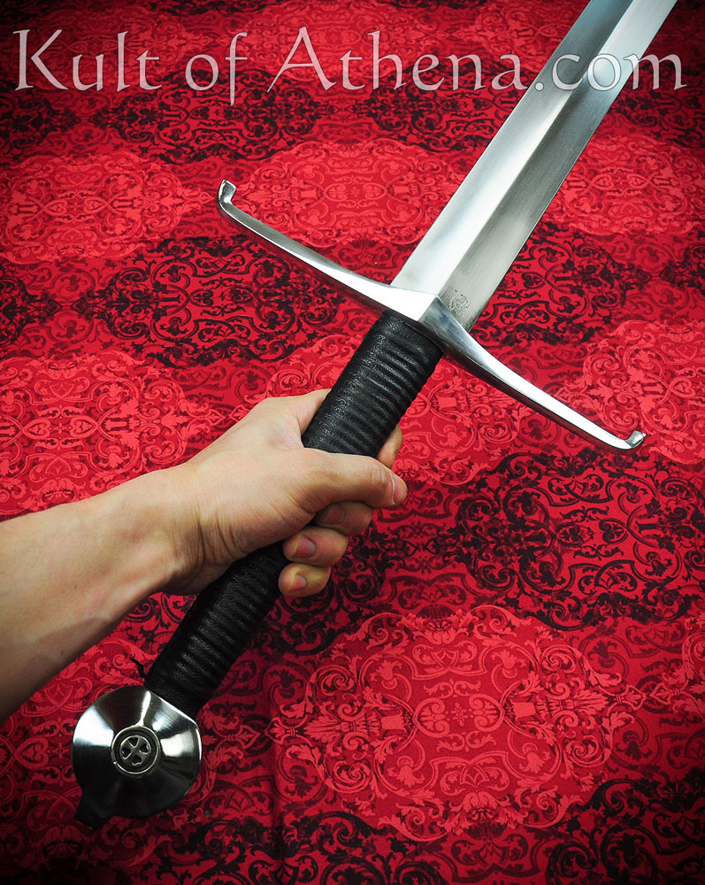 This longsword is a good example of a late medieval longsword – Its relatively low point of balance close to the guard makes it feel light and agile in the hand. The balance is well enough that an individual of good strength could technically use it single-handedly, though the very long grip makes this use somewhat clumsy. With two hands this sword strikes fast and moves with the swiftness that made the late medieval longsword a true professionals weapon.