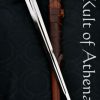 The Duke sword is inspired by an illustration in Eugène Emmanuel Viollet-le-Duc medieval encyclopedia, a masterwork of exposition and illustration. A classic knightly sword, the Duke is designed to resemble the cruciform arming sword so often found in medieval art. The straight guard is expertly sculpted and subtle in its smooth lines. A double-edged, single-fullered blade departs slightly from Viollet-le-Duc’s illustration in that it has a less severe taper and termination. The pommel may appear to be a standard wheel-style pommel with peen block, but has in fact been made slightly oversized to counterbalance the blade. This brings the point-of-balance closer to the guard, resulting in a sword that is startlingly lively in the hand and that flows effortlessly from strike to guard. The Duke is one of our best attempts at recreating the knight’s arming sword, and we hope the great Eugène Emmanuel Viollet-le-Duc would be proud of us.