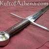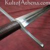 This is my first purchase from Kult of Athena but let me say I am impressed. Darksword armory has made an incredible product that is not only historically accurate, but also a fine blade. You really do get what you pay for with these swords. Kult of Athena also did an incredible job sharpening the sword and it cuts well without sacrificing durability. I am a taller fella at about 6’2″ so this sword may be too large for smaller frames folks but if you are looking for a crusader sword that you could fight zombies with then look no further. I am thoroughly impressed and I get downright giddy everytime I unsheath it. The scabbard is also made from quality leather and I enjoy the leather belt wrap that is integrated into it. This sword is definitely bang for your buck at 600 dollars. Honestly it could probably be worth more given the current markets. Overall, thank you darksword armory and Kult of Athena for giving me a family heirloom I’d be proud to pass down to my grandkids.