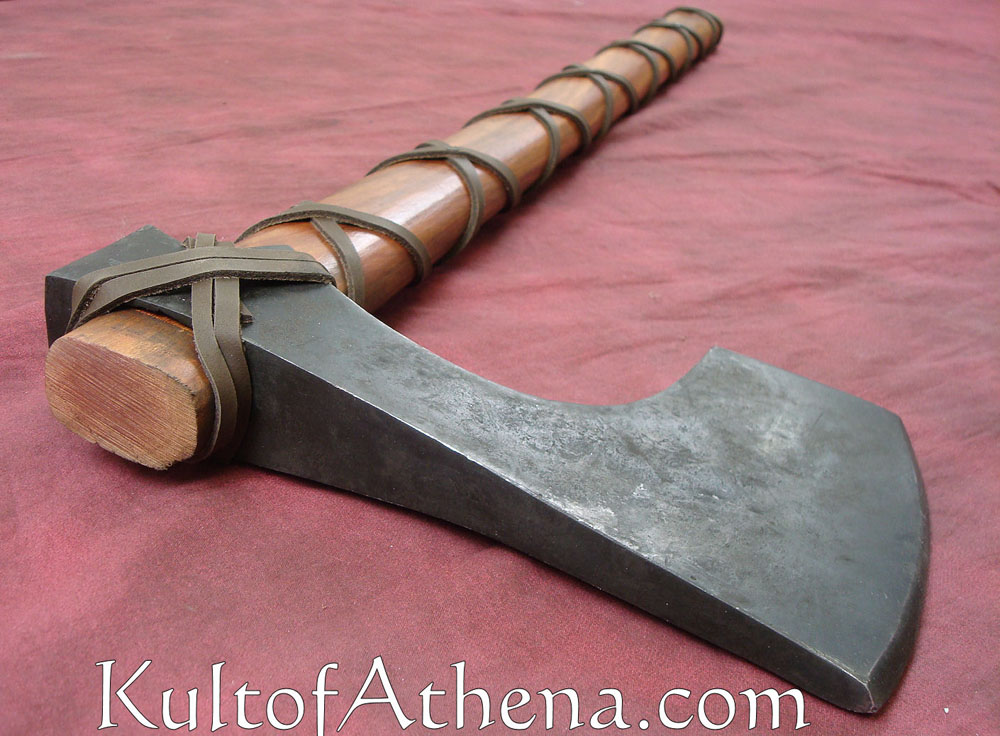 No Viking homestead would go without a stout-headed utility axe for splitting wood and hammering stakes. This could be used in a pinch for defense, but the woodmans axe was not ideal for war. It was thick bladed and ill-balanced. For war, the Viking preferred an axe designed to slay men, not trees.