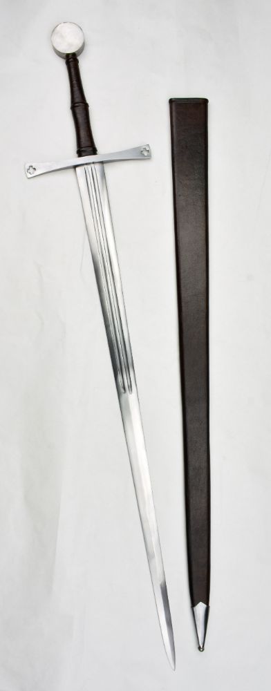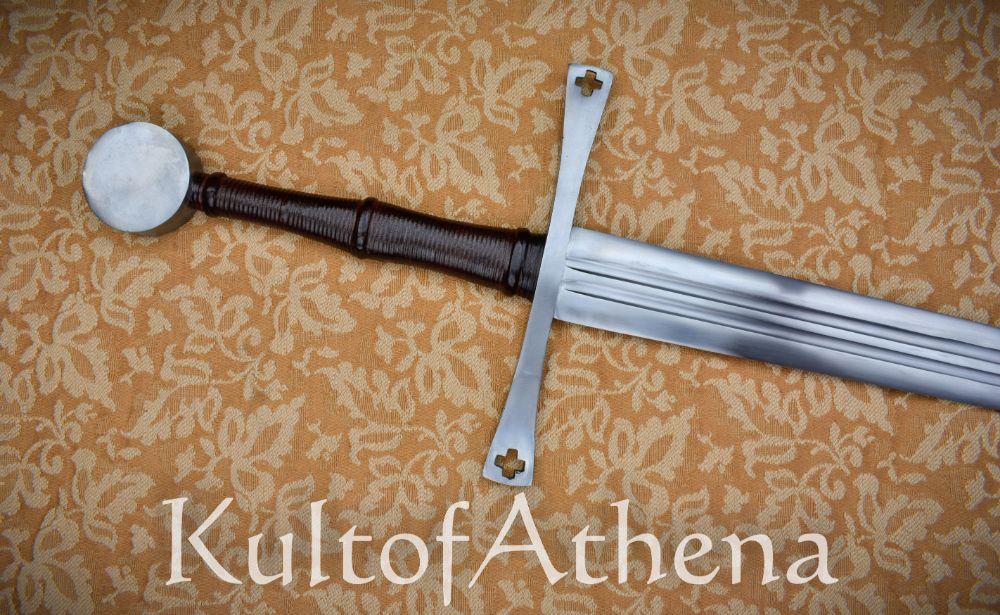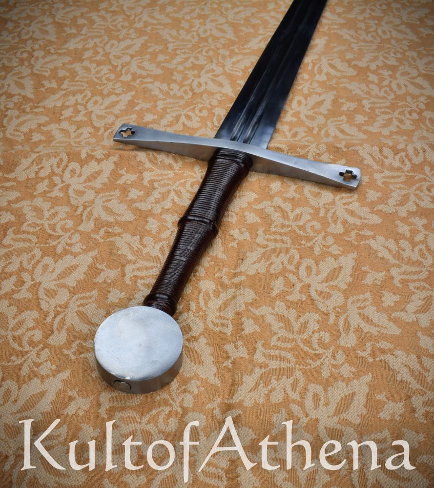 Overall sword is very sturdy, the scabbard fits snugly and is well made. Sword looks exactly as shown with no real defects. Only very minor finish work, such as the edge of the cross guard was a bit rough. Blade is straight and not warped at all. I had it sharpened and they did a great job with that, it’s nice and even. The leather wrapped handle feels really good in the hands and the large pommel allows for great leverage and control for large cuts. Pommel’s edges are rounded so it doesn’t dig into your hand at all. Overall great sword for the price.