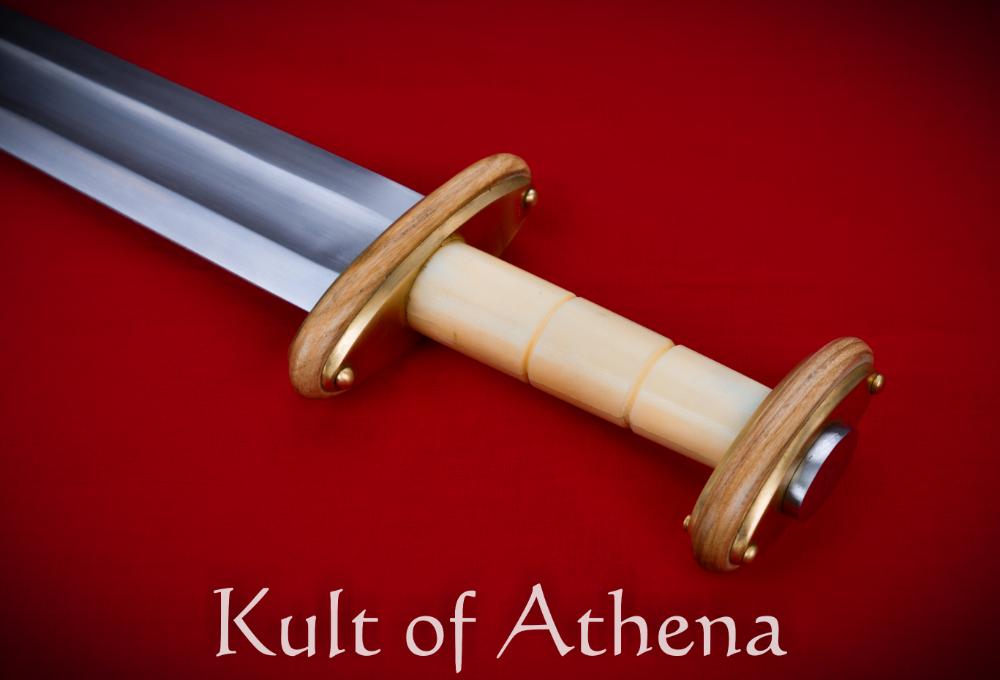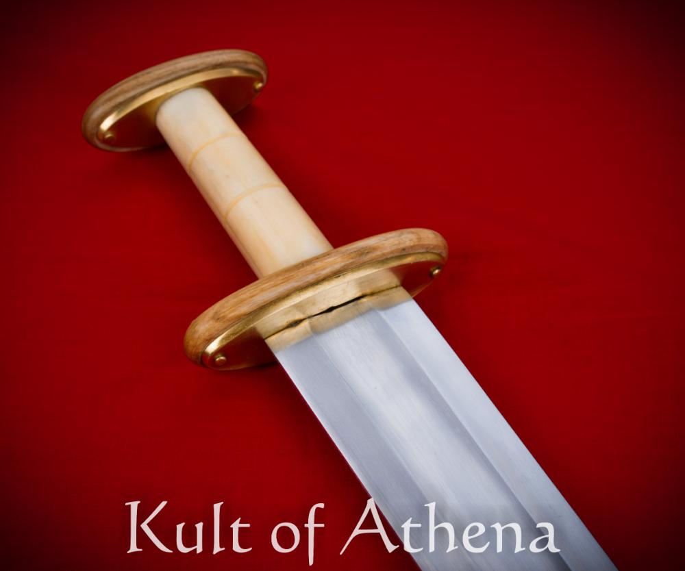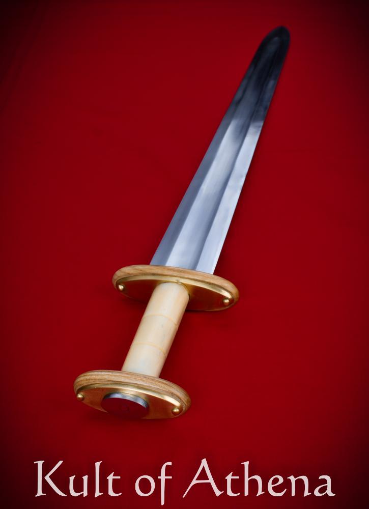A reproduction of a late Romano-British 5th Century Spatha, the Anglian-Feltwell Spatha is broadly representative of swords in the twilight of the Roman Empire, and such Spatha were common to find in the hands of Roman and barbarian alike in the tumultuous final century of the Western Roman Empire. It is an ideal sword for collectors, as well as Roman and Germanic reenactors and enthusiasts of late antiquity. The blade is well tempered C60 high carbon steel measuring 24″, whilst the sword balances at about 5″ forward of the guard. Its a surprisingly nimble and easy to wield example of these broad-bladed swords thanks to its distal taper and long, broad fuller.