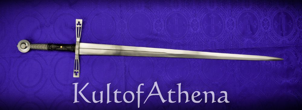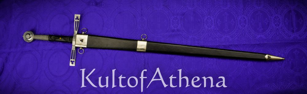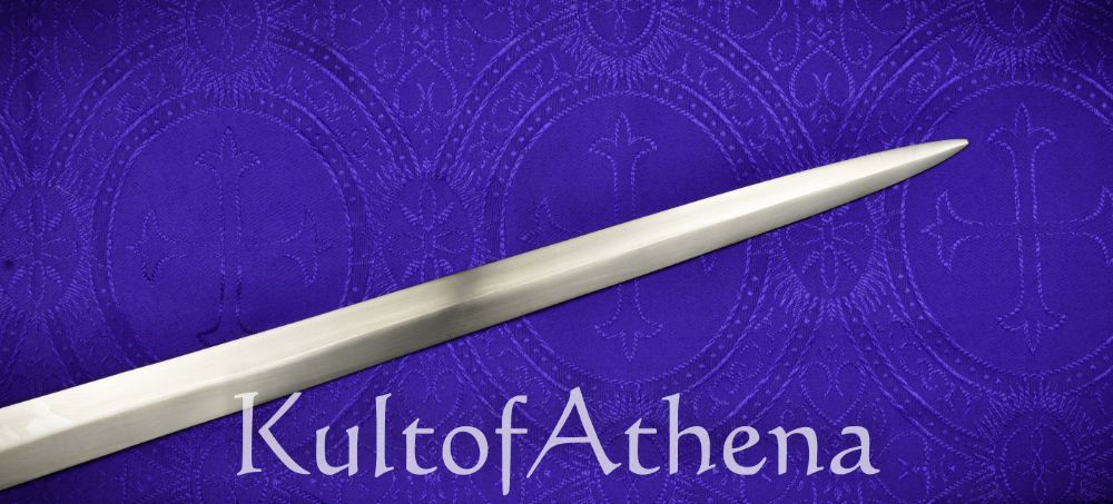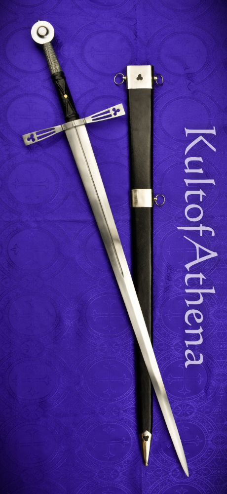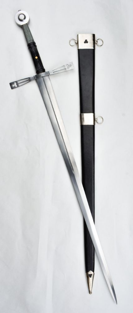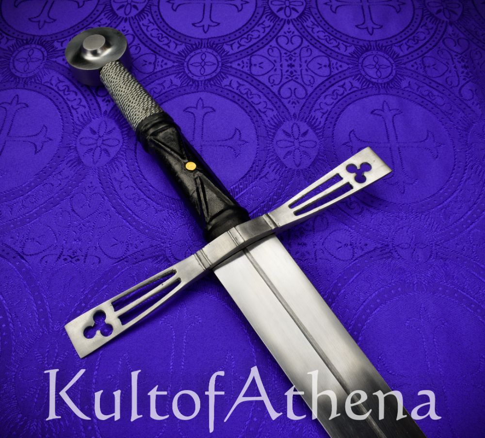 This 15th century Gothic styled longsword is a great match for a German Knight arrayed in Gothic armor; the sword is surprisingly agile and responsive due to its distal and profile taper which together make a lively sword well suited to drill and use. The blade is hand-forged from C60 high carbon steel – a steel with properties similar to 1060 high carbon steel. The guard and pommel are crafted from resilient steel and the wooden grip is half-bound in tight leather with risers beneath and wrapped in tight wire for its lower half. The sword is durably constructed and is paired with a wood-core scabbard which is overlaid in stitched black high quality leather complete with steel fittings and stainless steel hanging rings.