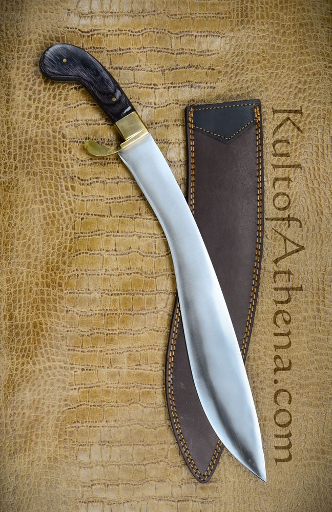 This Kopis is robustly constructed Kopis and a good pick for those who want to experience the great chopping power of these ancient Greek swords at a practical price. The thick blade spine and forward-sloping, elongated tip of the of the Kopis combine to give it a chopping and hacking power more akin to an axe than a sword! Its thrusting potential can also be surprising and a good warrior could use that to his advantage as his foe may look at his sword and expect a slash or a cut instead of the thrust.