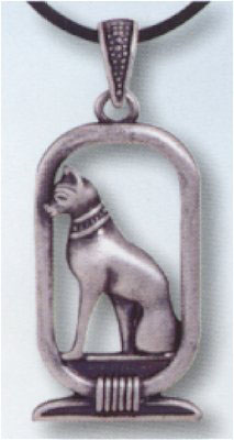 The Egyptian Bastet Pendant is made of cast metal in a pewter finish. Includes adjustable neck cord.