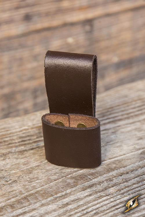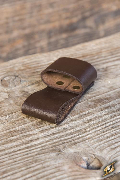 Match this Throwing Knives Holder with any character you wish to equip by securing the holder to your belt through the 7 cm belt loop. Made from chrome-tanned split-leather, reinforced brass studs, and stitching around the edges, this weapon holder is built to keep its shape and withstand the abuse of a LARP with regular leather care.