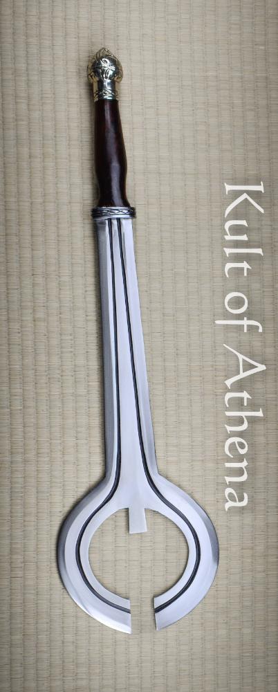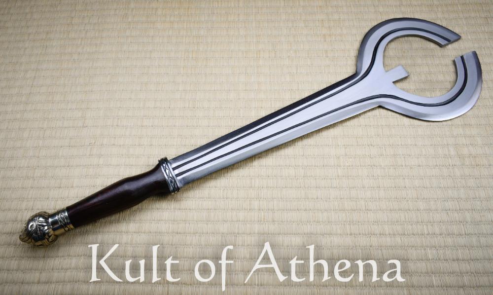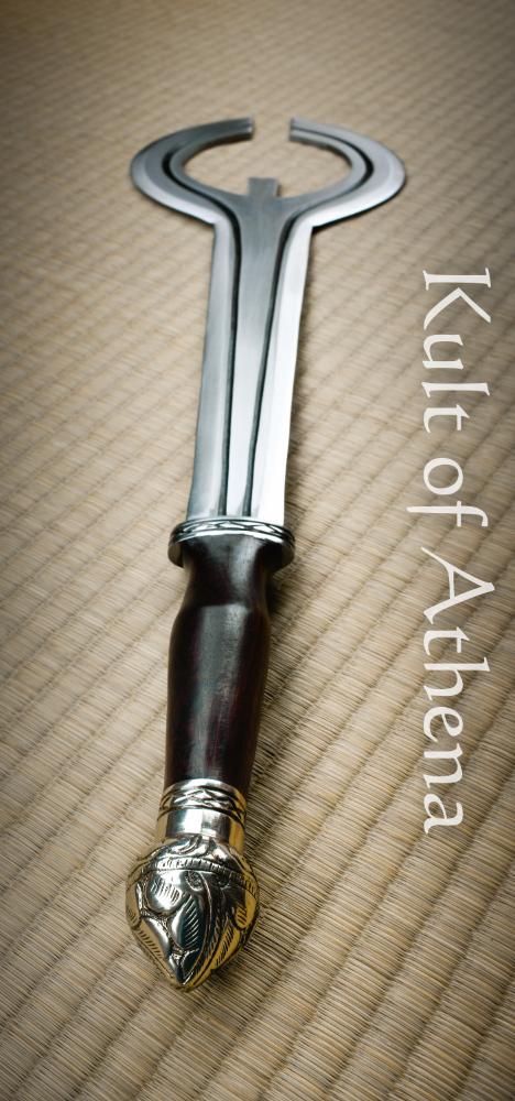 The Double Ngulu Sickle Blade from Everest Forge is a striking recreation of one of Central Africa’s most distinctive and fearsome traditional weapons. With its twin inward-curving blades, pronounced forward mass, and aggressive geometry, this Ngulu-style sword is designed for deep, authoritative cuts and heavy chopping power. Weighing 2 lbs 3 oz with a point of balance approximately 7.5 inches ahead of the grip, the weapon carries a decidedly forward-weighted feel that translates into substantial momentum and cutting force with each swing.