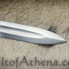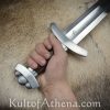 This Viking sword strikes a fine compromise between hard-hitting heft and overall balance and agility. A long blade fuller brings its weight down to less than 3 lbs and has a heft in the hand that feels capable and solid – yet the sword retains enough agility to prevent it from feeling clunky or weighty on the wrist. This point of a balance at around 6 ensures that the main cutting portion of the blade strikes with great and decisive cutting force, yet is not so far down the blade as to make it tip-heavy and onerous on the recovery.