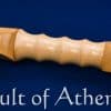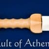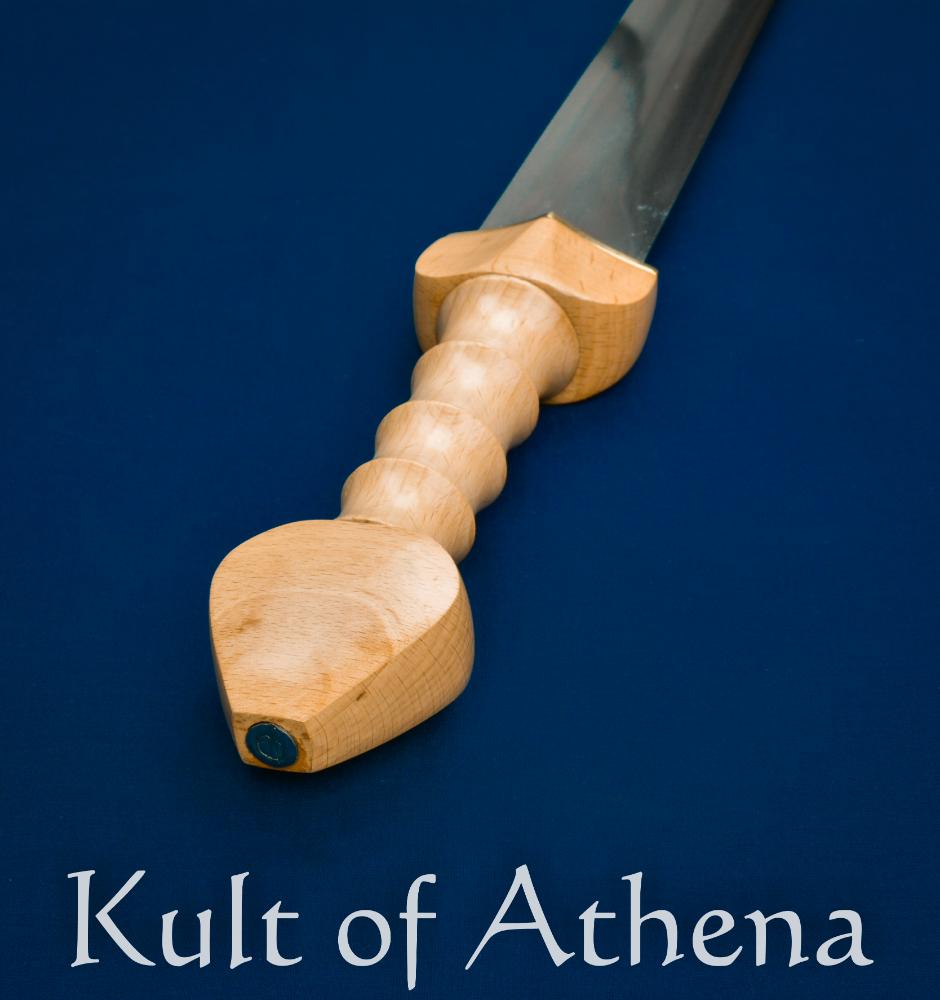 This handcrafted reproduction has a tempered blade of 1065 high carbon steel which is paired and mounted into a hardwood hilt of hand carved and high quality ash wood which is lacquered and polished to a smooth semi-gloss sheen. Its guard plate is polished solid brass with care taken for a good matched fit between guard and guardplate. On a single side of the blade the thematically modified Fafnir Forge logo is hand-inscribed in Roman styled font. The sword has good distal taper between the base and tip of the blade to keep it from feeling excessively heavy and tip-weighted. Its balance encourages powerful, broad cutting strokes that impact with decisive power. Its tip is acute enough to make it a formidable thrusting sword as well, making this a fine sword for the Roman cavalry and infantry alike and well suited to the rapid response actions needed by the Roman garrisons among the Limes border defenses.