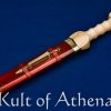 Care was taken to pair the sword with a high quality scabbard with a wood core for a full weapons package. The wood core of the scabbard is overlaid in stitched deep red leather and it is completed with mirror polished brass furniture and a brass scabbard slide secured with leather banding which allows the sword to be worn from a sword baldric as befits the Roman soldiery of the late 3rd century.