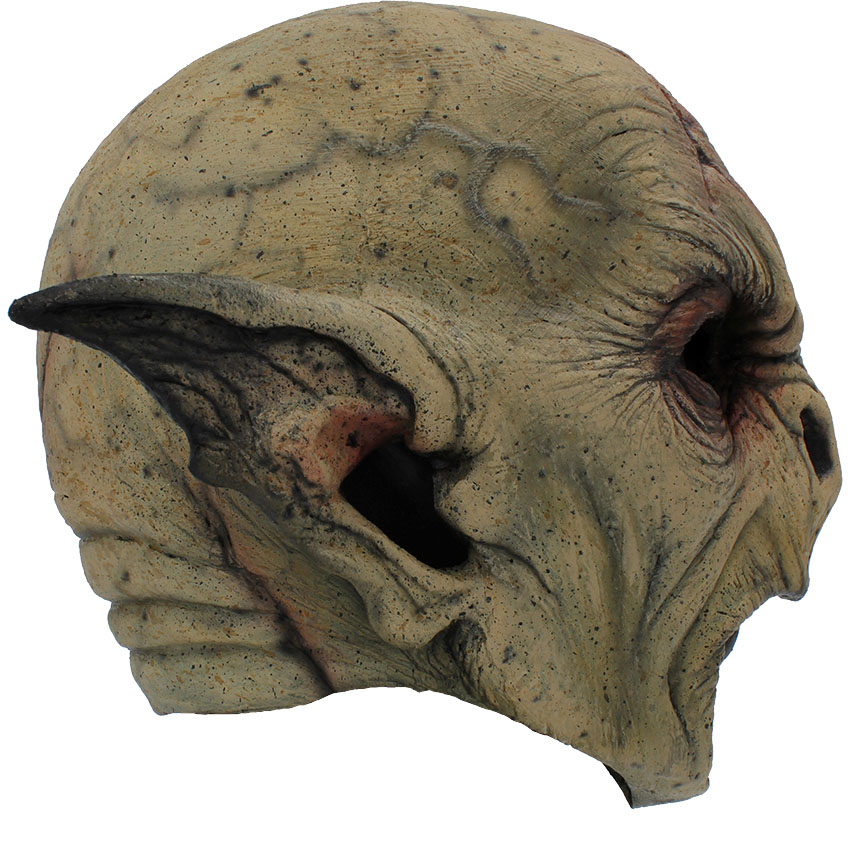Epic Effects Ocher Feral Orc is a full Orc Mask with an animalistic appearance, perfect for the orc who has gotten in touch with his inner-beast. This mask has an orcs distinct features, including: a low, furred brow, serrated pointy ears and a rounded nose with nostrils drawn up in a sneer. The shape of this mask is skull-like, with leathery skin modeled with creases, deep eyes, and lined cheeks with expressive cheekbones. Hand painted scars and heavy veins add detail to a pale-brown ocher complexion, achieving an aggressive appearance while also maintaining realism.