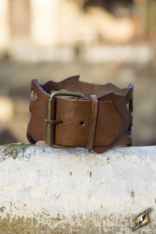 Epic Armourys Filigree Bracelet is a beautiful and detailed leather bracelet. Made from a 24 cm long top-grain leather strip cut into an intricate leaf-vein design, its the perfect addition to an elven or rogue costume. Secure the bracelet to your wrist using the iron buckle.