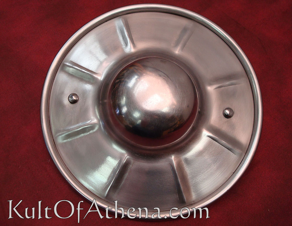 Fluted Steel Buckler – 9 Inch Excellent little bucker, stops fully thrown blows with little issue and does not dig into the hand.