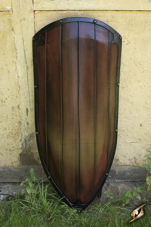 Epic Armourys Footman Tower Shield is a kite shaped latex shield originally inspired by the Normans. Finished with a hand painted wooden body and decorative metal rim, this shield is sure to impress your fellow warriors on the battlefield.