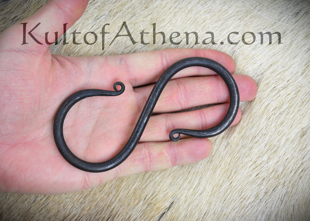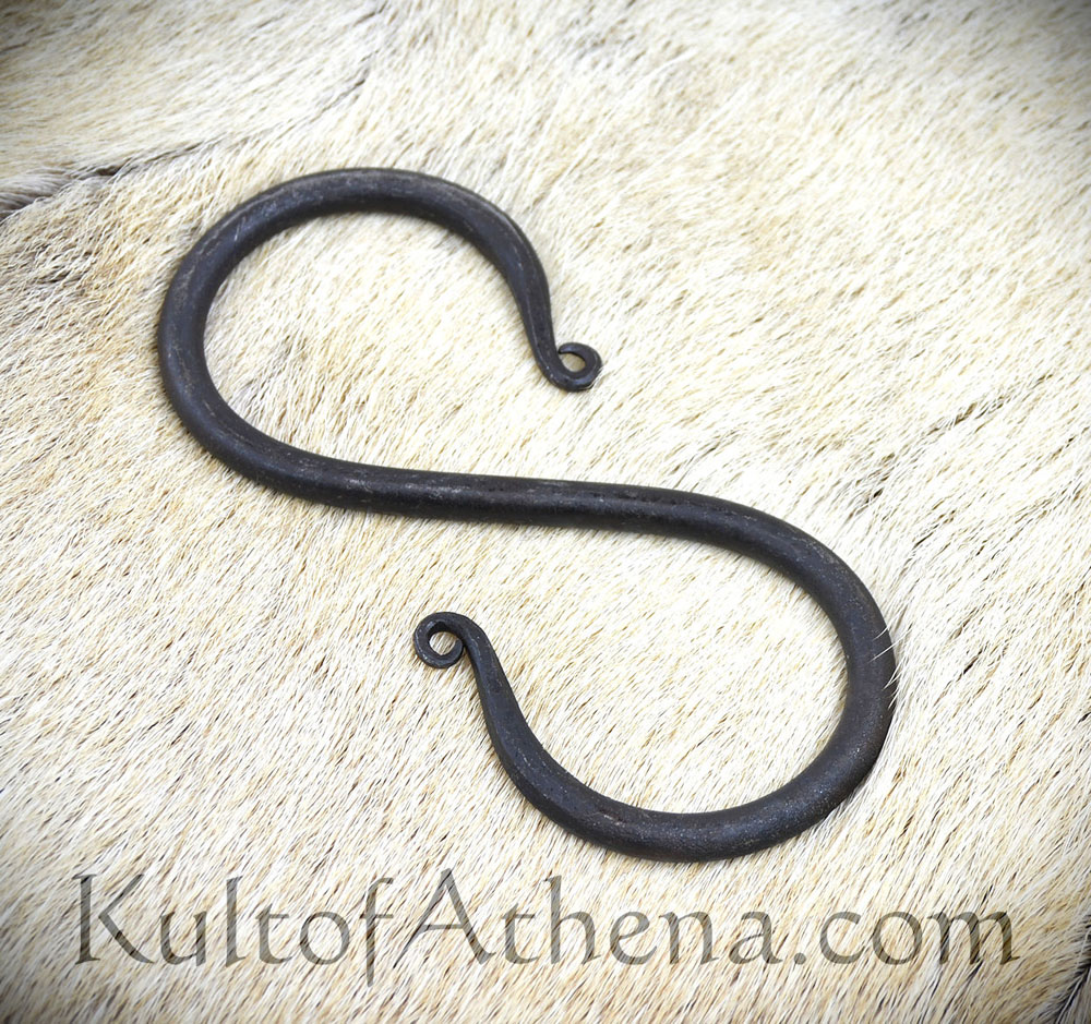 This Medieval S hook is forged from iron and is suitable for hanging a kettle from a cooking stand and other reenactment uses.