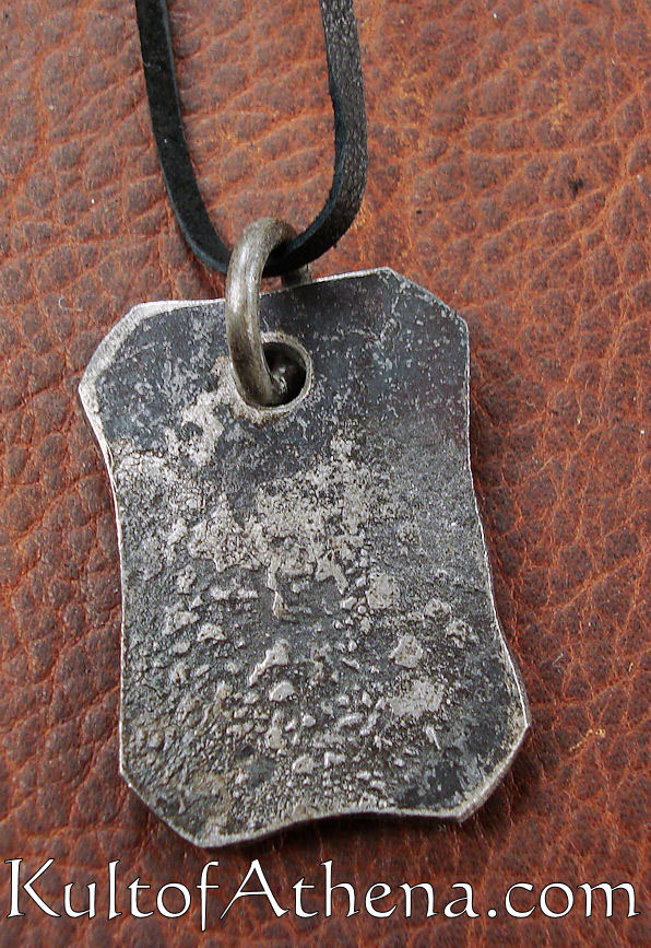 The Rune pendant is made from forged steel. Comes with a leather neck thong.