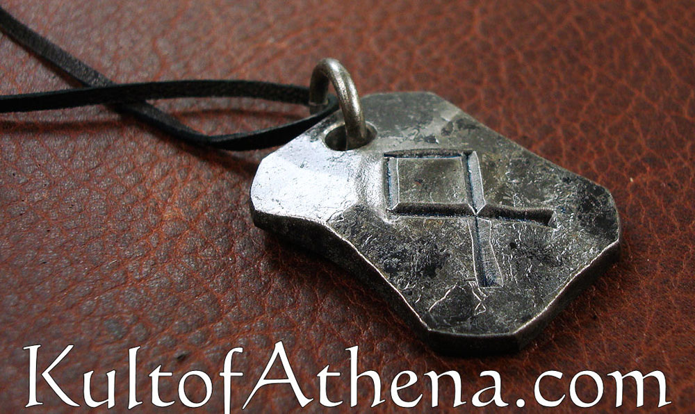 The Rune pendant is made from forged steel. Comes with a leather neck thong.