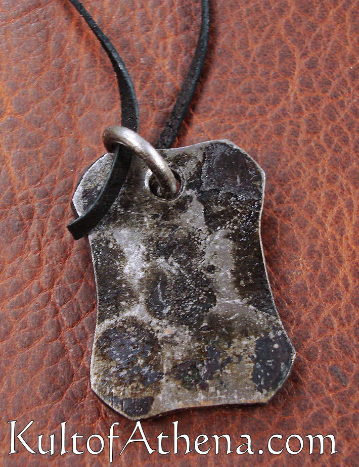 The Rune pendant is made from forged steel. Comes with a leather neck thong.