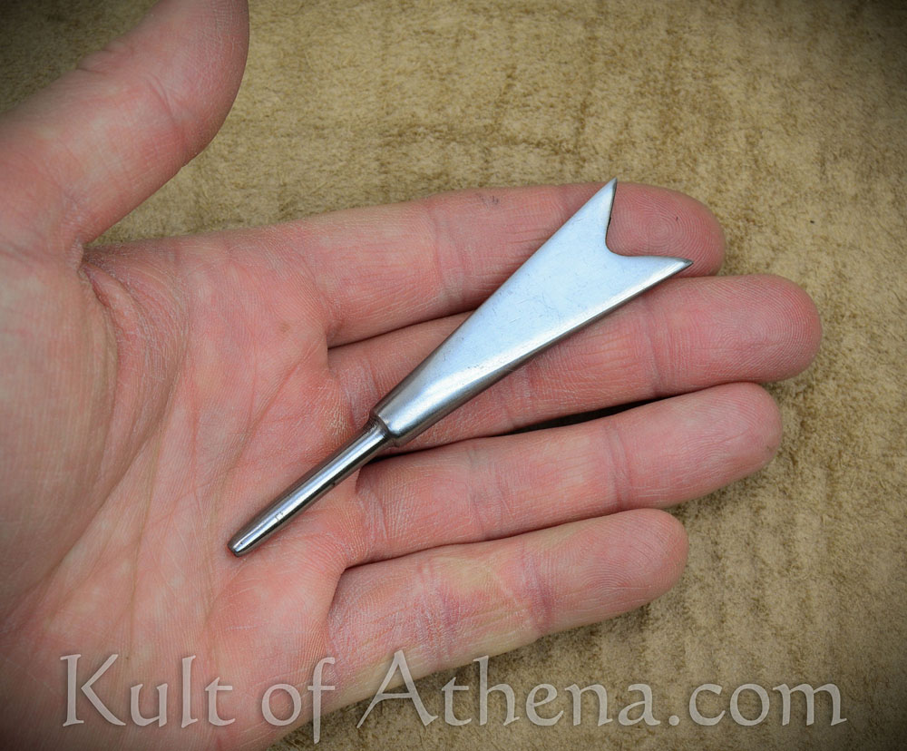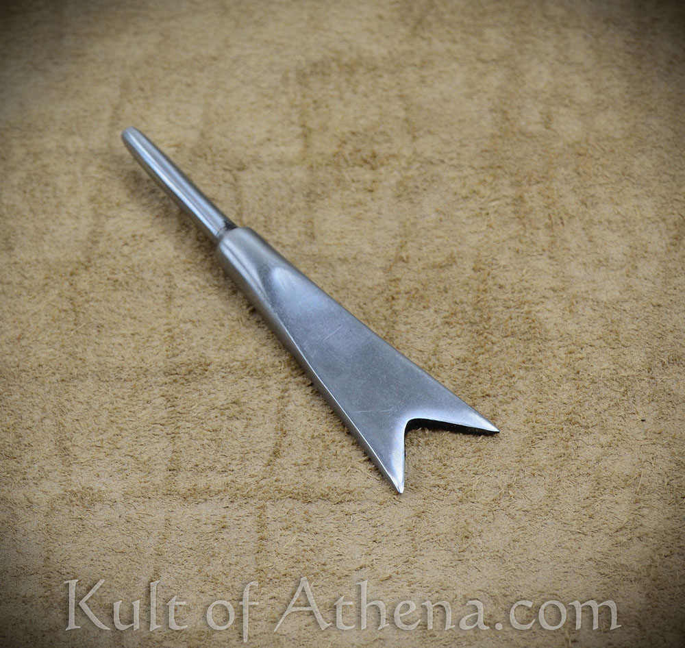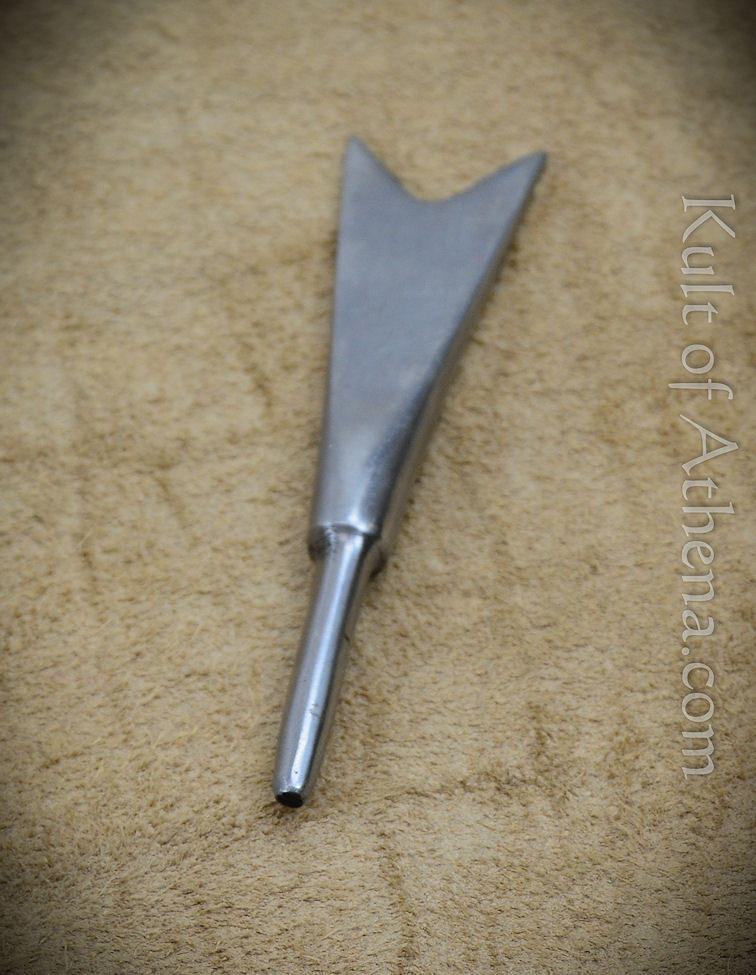 This forked arrowhead is crafted from high carbon steel and is unsharpened.