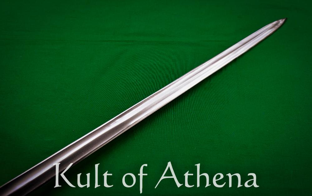 Universal does a nice job in the fit and finish of their pieces. They look great on display. Their weapon dynamics, sad to say, are poor. Drawback with all the Universal attempts at using this type blade (and they use it 7 different swords) is their inability to approach the correct grind. In curassier form the blade stock starts at 10.5 mm and ends with a foible blade slightly under 2 mm! The enlisted blade does weigh 3 lbs ( I have 4 originals ), but thanks to very particular balance engineering these swords are very manageable in both holding a point on line, and in cutting.