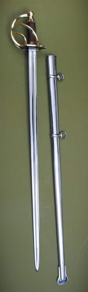 It’s not French. It’s a Russian M1810!! This is one of the old Chouhan family classic blades. The blade is the French double fullered straight blade employed in the Empire by Heavy Cavalry Cuirassiers and Dragoons. Czar Alexander I was much impressed with many things Napoleon and ordered the Zlatoust arsenal to produce a Russian version of the French icon. The hilt is styilized, with a square guard plate and a champaign stopper pommel, otherwise it is the same sword.
