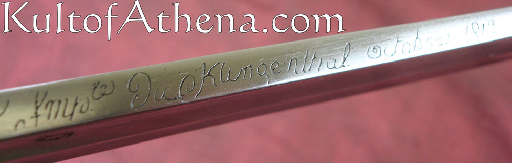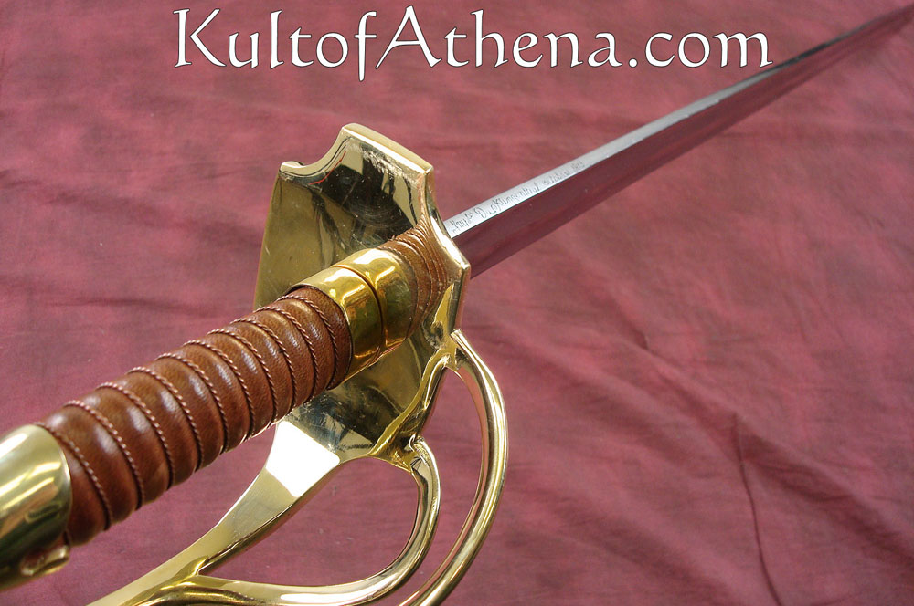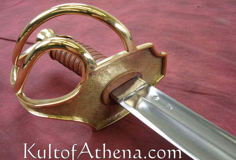 Universal does a nice job in the fit and finish of their pieces. They look great on display. Their weapon dynamics, sad to say, are poor. Drawback with all the Universal attempts at using this type blade (and they use it 7 different swords) is their inability to approach the correct grind. In curassier form the blade stock starts at 10.5 mm and ends with a foible blade slightly under 2 mm! The enlisted blade does weigh 3 lbs ( I have 4 originals ), but thanks to very particular balance engineering these swords are very manageable in both holding a point on line, and in cutting.