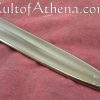 The sharpening service is done with a belt sander. The process involves many passes with sanding belts of various grits. The blades are rested between passes to prevent them from becoming hot and damaging their temper. By default we will sharpen as much of the blade as possible including any false edges if appropriate. If you have a different preference, feel free to make that request in the special instructions at check out. We can sharpen only the last half or third of an edge, for example. Our sword sharpening expert has personally sharpened several thousand swords at this point, so will provide you with a professional service.