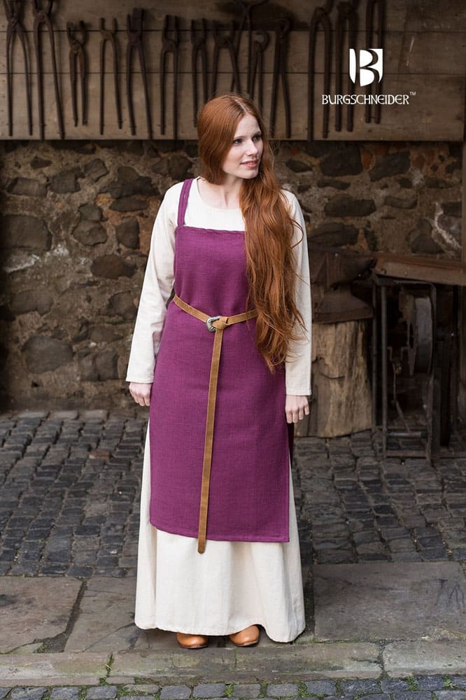 This Viking Hangerock apron dress is crafted from uncombed cotton and is meant to be worn over an underdress for a complete Viking outfit. Large slits at the side allow for more freedom of movement. From Burgschneider of Germany