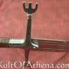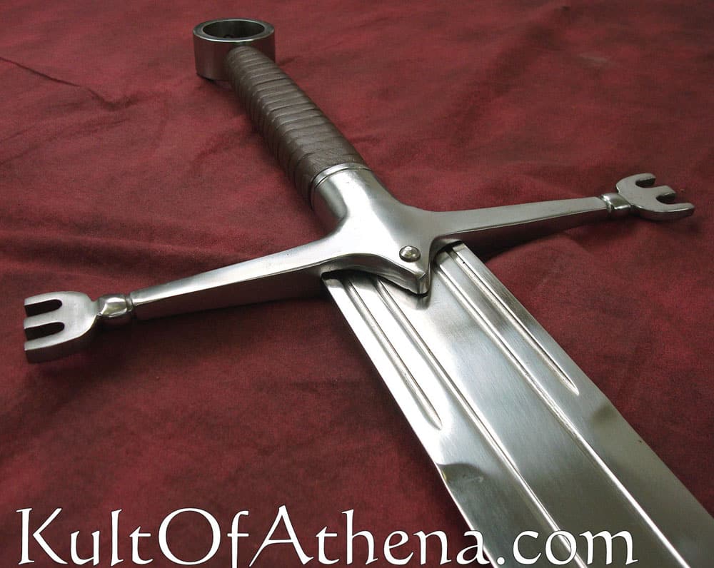 Deepeeka at its best this sword is a heavy beast, mine got the name sword smasher because the first time i used it in combat it snapped my opponents blade right in half. However Swordsmasher lived up to her name a little too well and i was forced to retire her to save the wallets of my associates. Even so this sword is one of my favorites in my collection from its design to how it handles, it takes a strong person to wield this. some down sides are it’s very heavy and the handling is a bit rough, and while the blade handles impact well the handle does not and will rotate when taking heavy blows, and lastly the “fork at the end of the cross guard was chopped of my an english bill (it was a heavy blow though.)Finally this sword is a good buy, it will look good on your wall, and great for practicing although, be careful when using it in sparring.