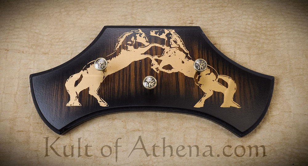 The sword comes with a wooden plaque screened with dueling horses – it comes with mounting hardware that allows this ominous Arakh to be prominently displayed on a wall. It also comes with a certificate of authenticity.