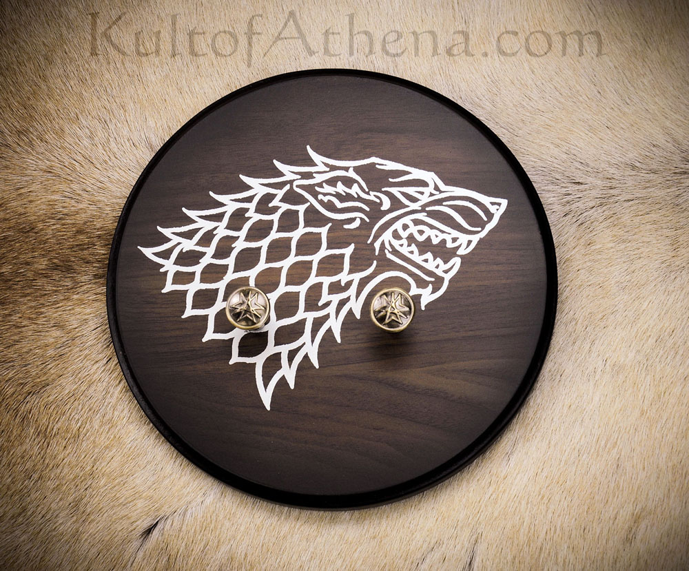 The officially licensed reproduction of Arya Starks Needle on HBOs Game of Thrones has a blade of stainless steel, a guard and pommel of antiqued brass and a grip of brown leather. It has been recreated from the show prop. The sword comes with a Certificate of Authenticity and a wooden silkscreened wall mount emblazoned with the Direwolf sigil of House Stark.