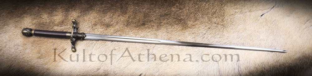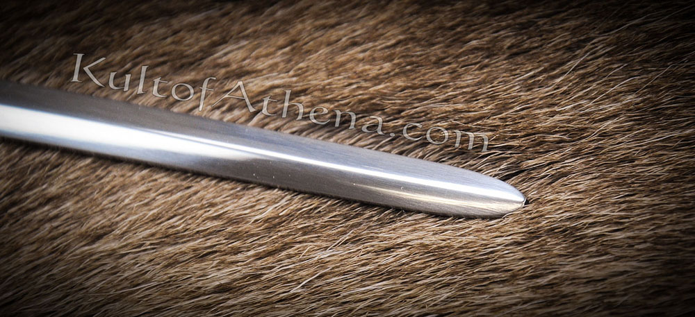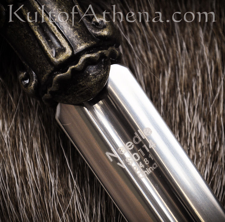 Though Needle is a small and light sword, it is deadly in form – the thin point lends itself well to piercing a gambeson or fitting through and splitting links of chainmail. Long, piercing wounds are not as visually impressive great cuts and slashes, but the internal damage caused by such a blade is very deadly. A foe pierced by even a few inches of such a blade in the torso is highly unlikely to survive. A good sword for Arya Stark; a deceptively deadly blade combined with a deceptively deadly young girl is a fitting combination for the rough land of Westeros and beyond.