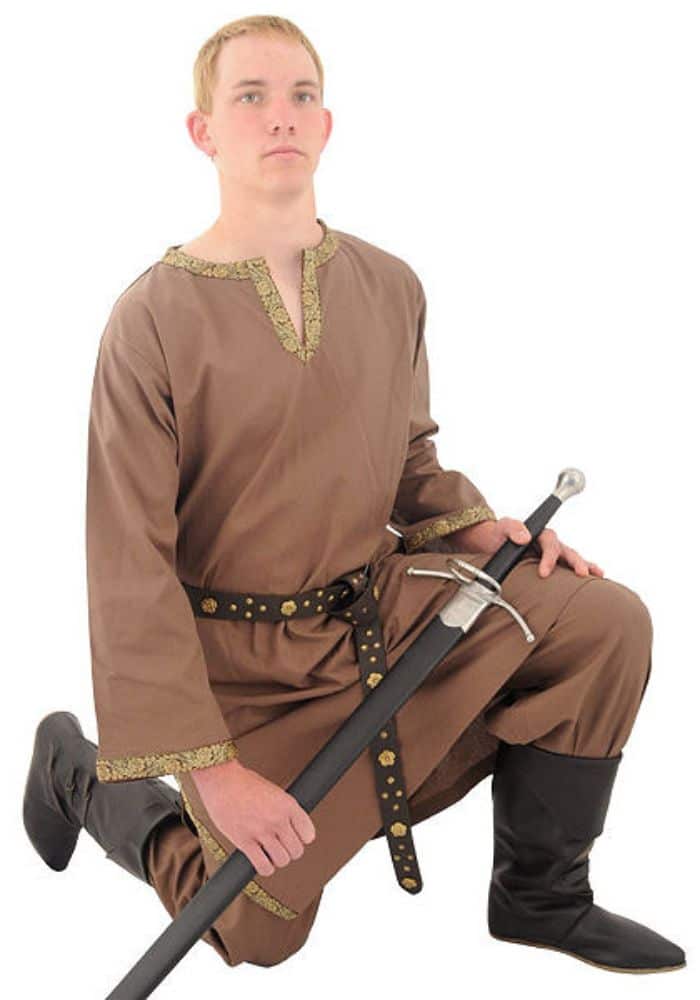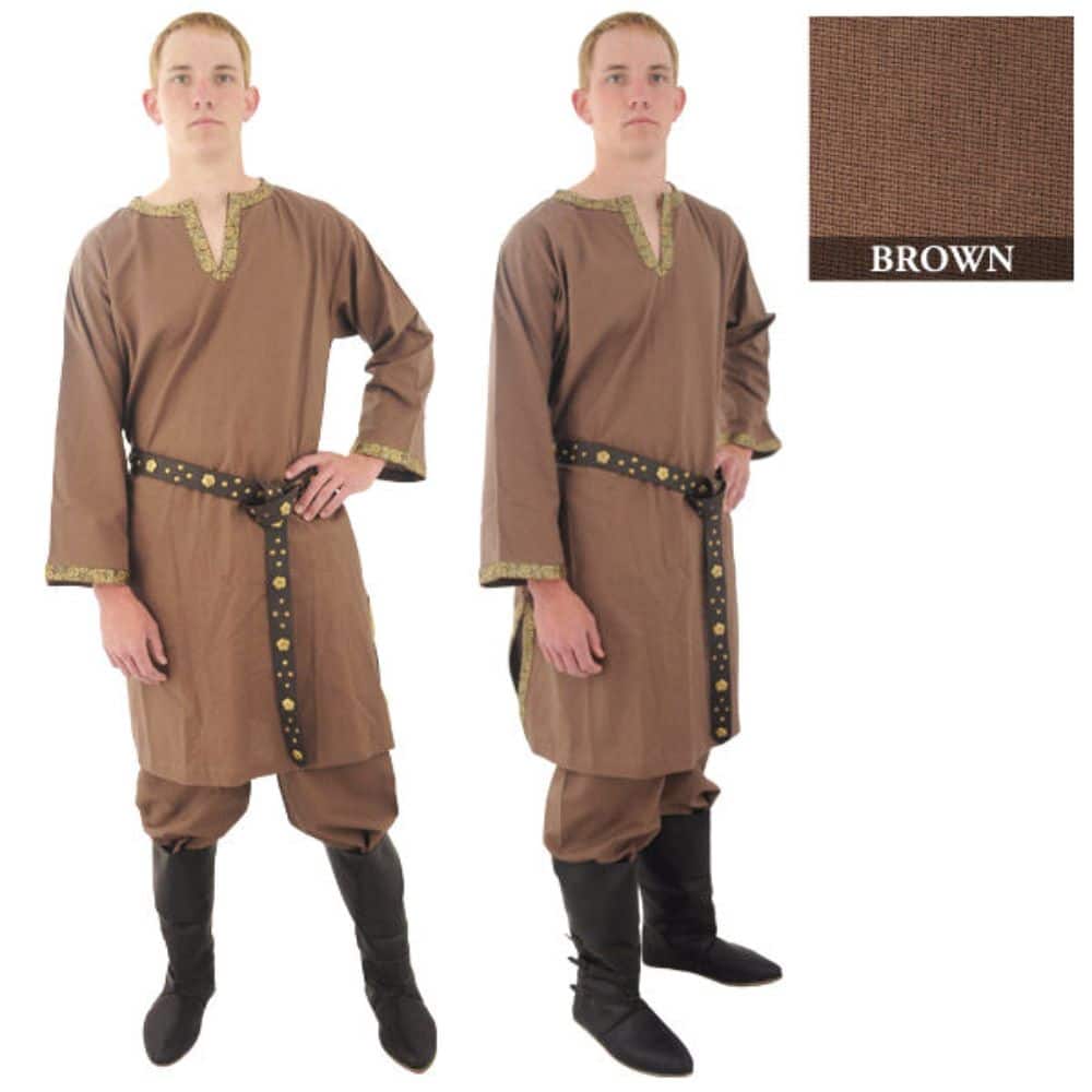 Suitable for use with many period outfits, this authentically-tailored knee length shirt features decorative ribbon and full sleeves. 100% pure cotton.