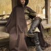 Epic Armourys Godfrey Twill Cape is an ankle-length cape with shorter sides, fitted with a hood and cotton-strap fastenings. This design offers more mobility of the arms, allowing them to easily slide from beneath the cape when hands are needed without sacrificing protection from the elements. This cape makes a great accessory if you need to add layering to your characters costume, as capes have become synonymous with medieval and fantasy clothing. Capes are also highly practical in limiting the impact of wind, rain or sun.
