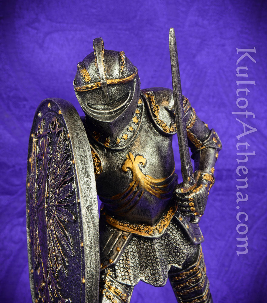 Braced against their stout shields these Knights in Gothic styled armor will faithfully serve to hold upright a weighty length of books and tomes. Cast in robust resin, these Knights are handpainted for a finish.