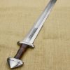 Bought this on another site after returning a Hersir. The weight and feel of the Gunther is much improved over the Hersir and the blade has some distal taper. Unfortunately, I found it to be a bit more roughly finished than the Hersir even though it is a simpler guard/pommel design. The blade was a bit shinier in finish than the Hersir. The blade had a slight twist out of flat in the last 1/3 of the blade but the edges were pretty straigth…the Hersir had a much worse twist and the edges undulated like a snake. Attractive, simple scabbard that has good retention (gasket in the throat) but rattles. Overall, about what I expected for this price point: rough but ready.